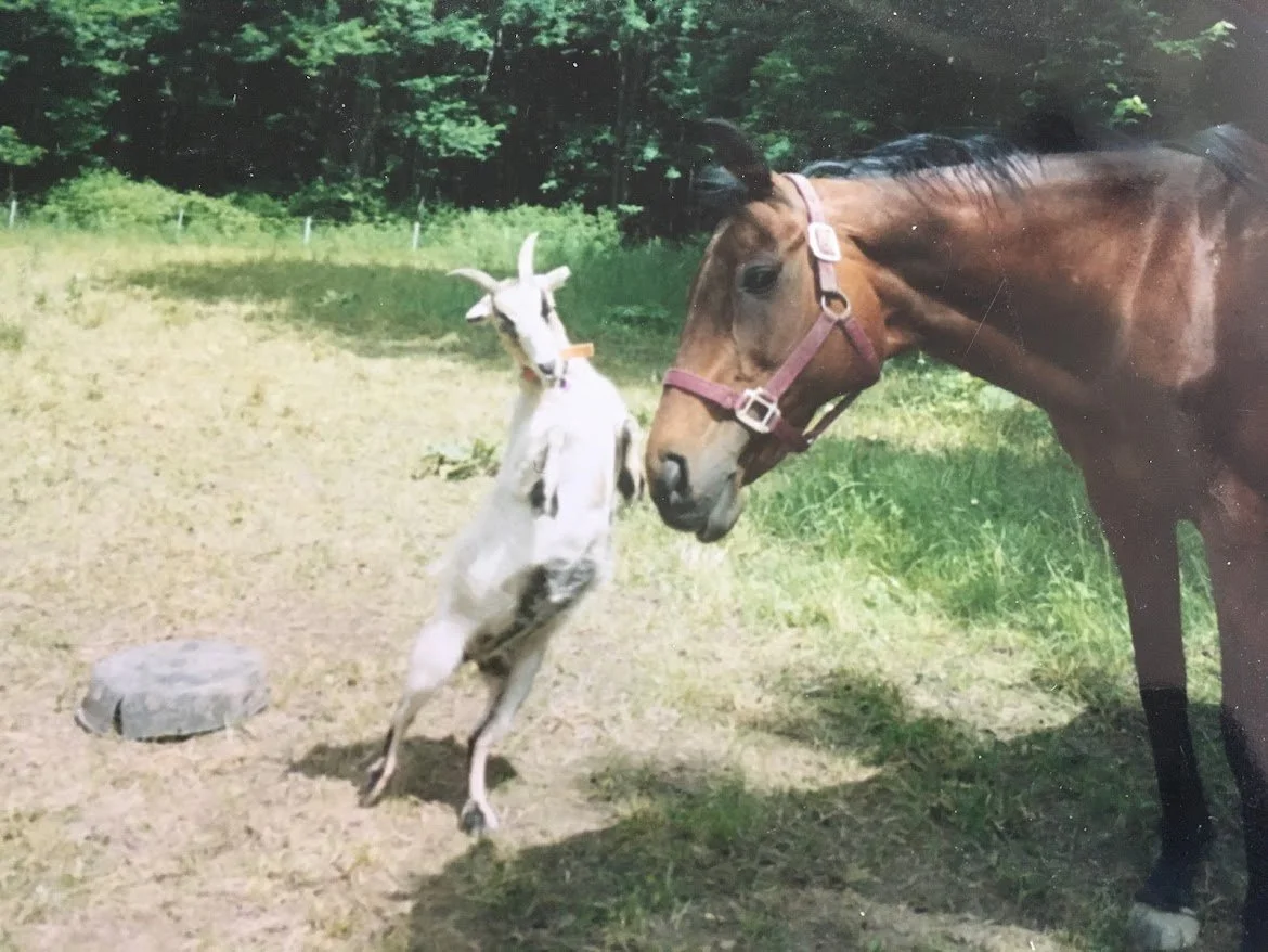 Our goat journey started in 2005 when Gracie, a 2 year old Pygmy (?) doe came to our farm to be a buddy for our horse whose pasture mate had recently died. I was away at college, so my family cared for the farm. We knew absolutely nothing about goats back then, we were not a “goat” family. Gracie was not tame AT ALL. For the first several years it was a struggle to catch her, and she would not come to us even for treats. As the years went on, she warmed up to us finally, and loved head scratches. Gracie got no special goat feed, she ate horse hay and grain, and I would trim her feet when I came back from school breaks, and that was about it. While we did eventually get another horse, Gracie was our only goat for 12 years. We had no idea that goats needed another goat buddy, which looking back should have been obvious. She got into chicken feed all the time, she never respected fences, and she would follow me all over the neighborhood on horseback trail rides. It was probably sheer luck that she lived to the age of 14. When I moved back home, she was a little old lady, but we did get to spend her last few years together. I still wasn’t into goats, but I did love her very much.